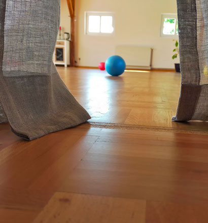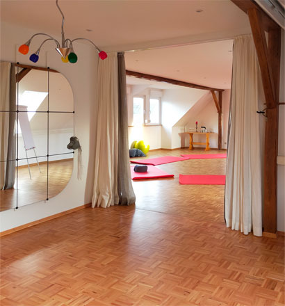 Die Kleidung sollte bequem sein. Wir bewegen uns im Raum auf Socken. Bei Bedarf sind Stoppersocken vorhanden.